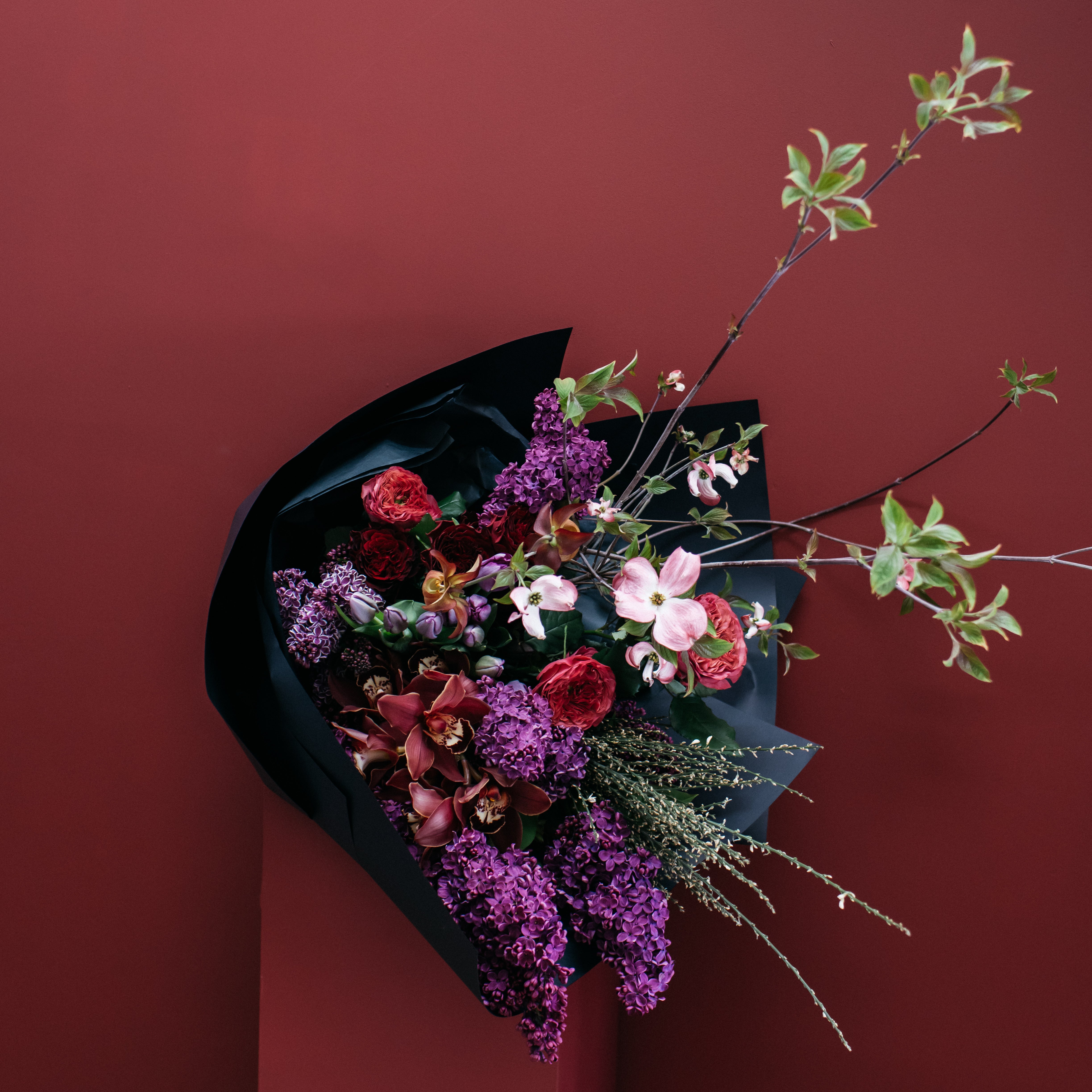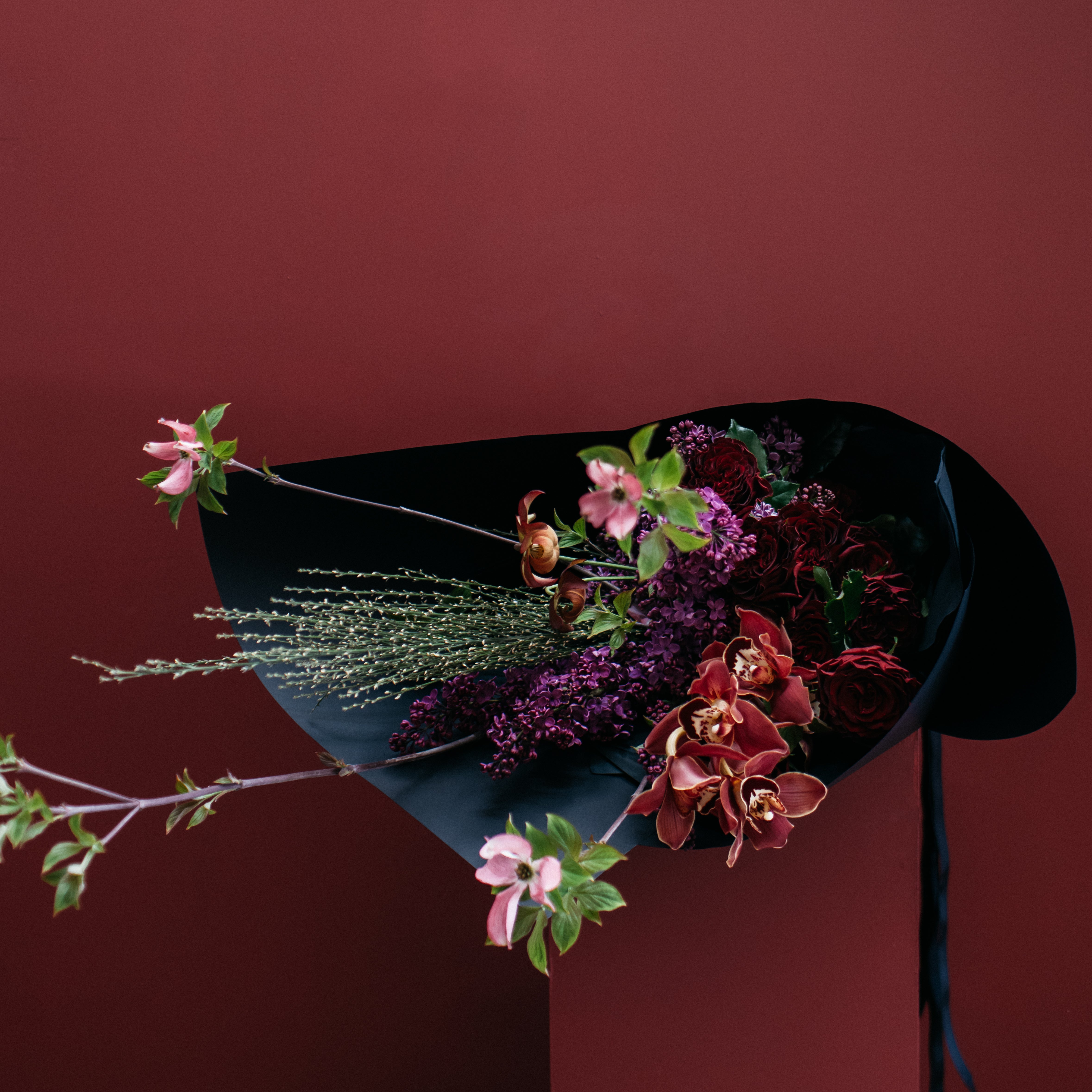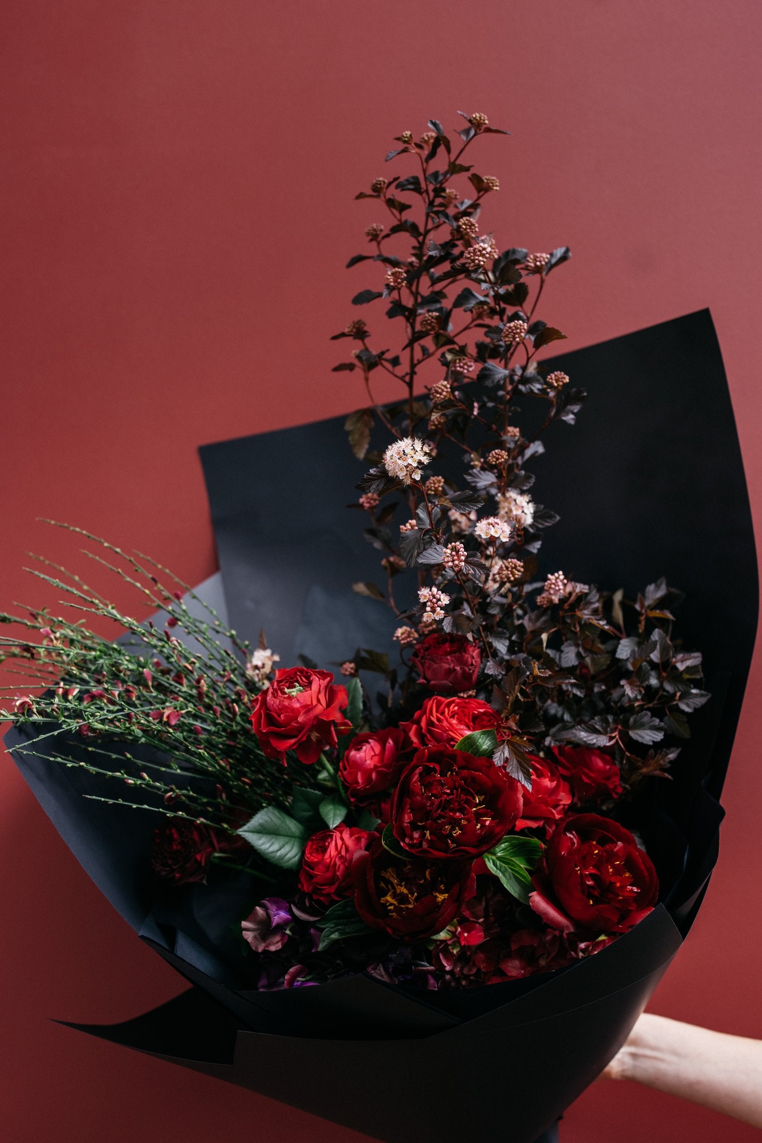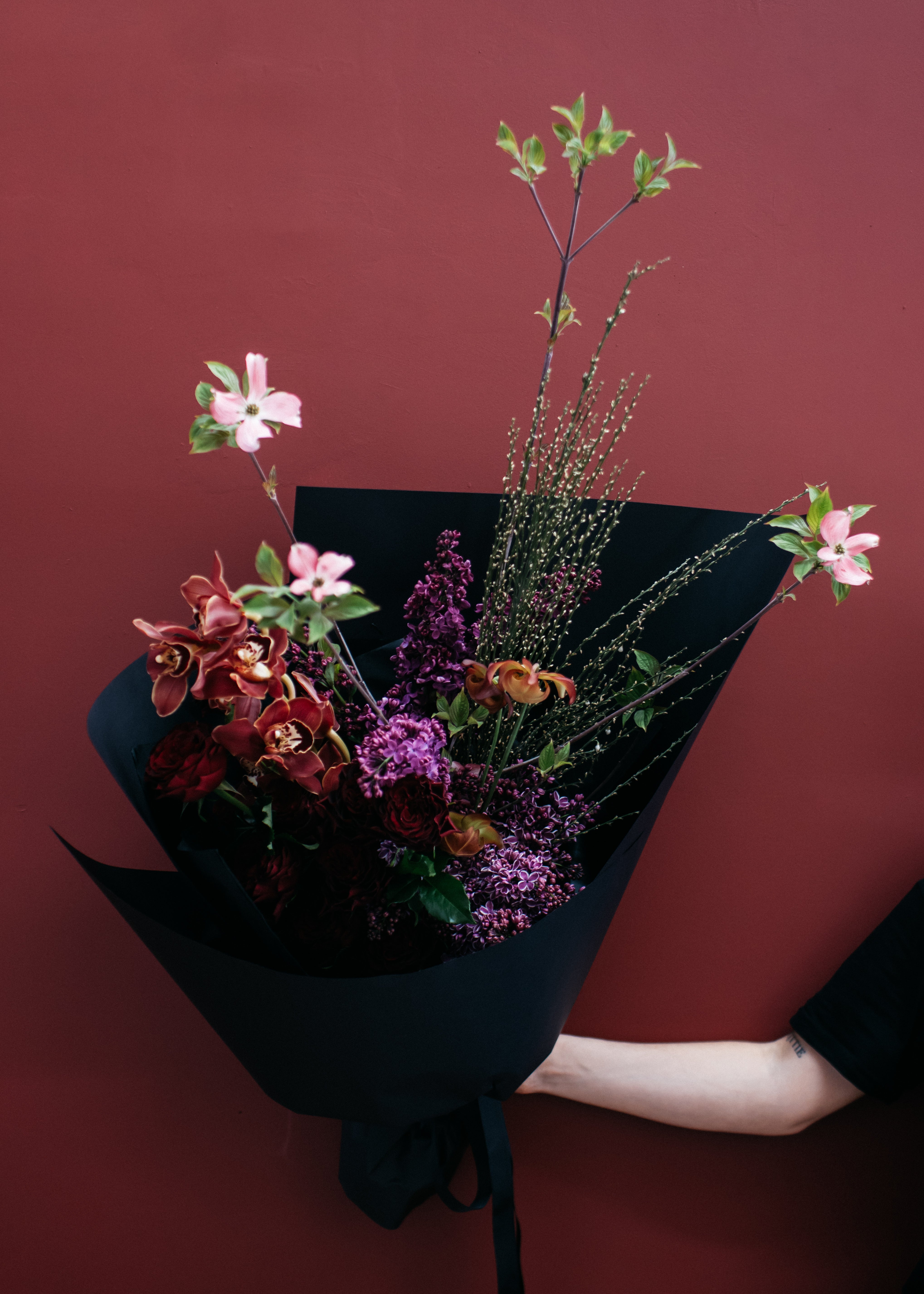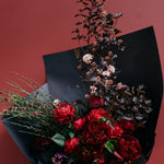 A DARK & MOODY mixed floral and foliage bouquet hand selected by Wild Flos.
