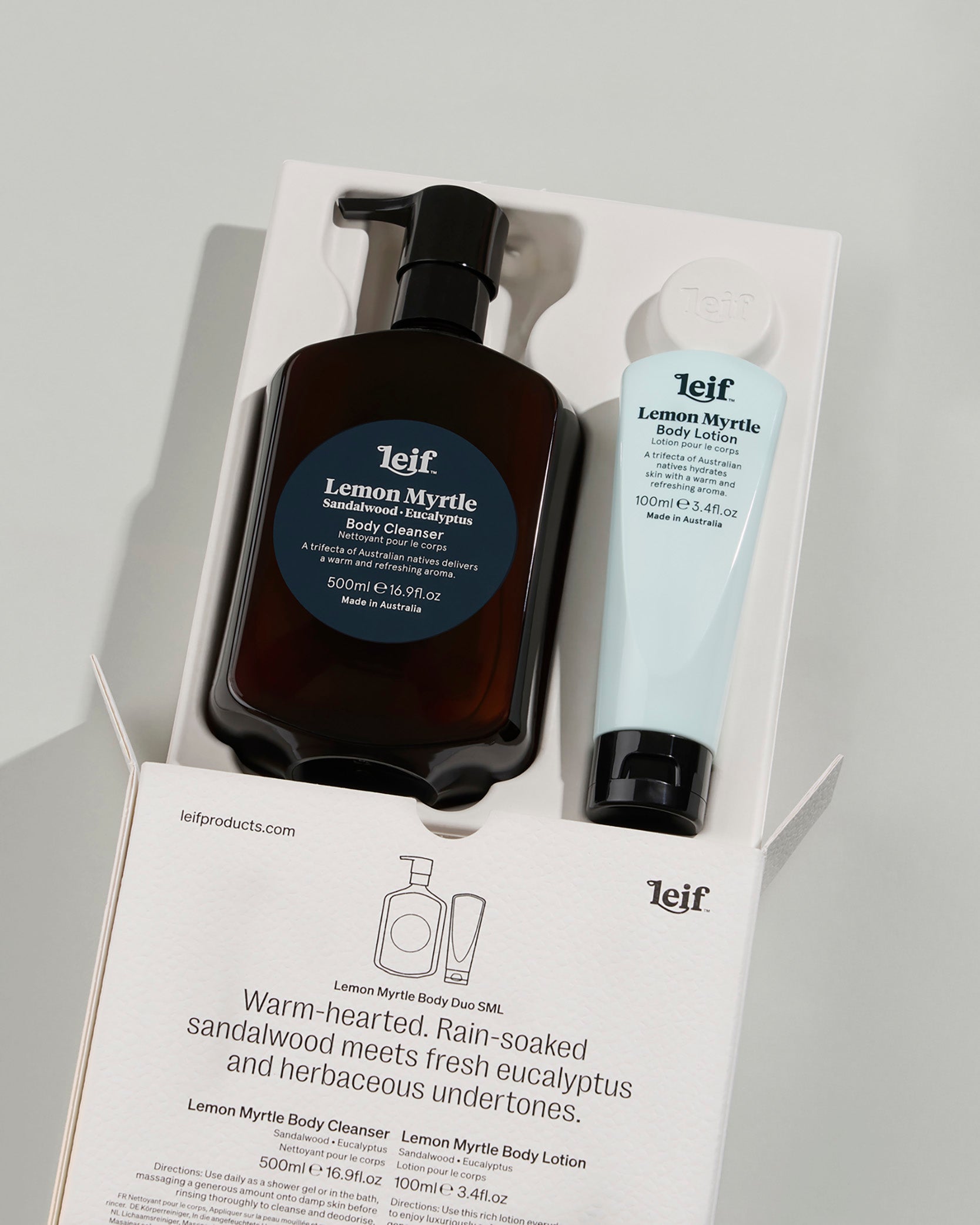 This gift set ties together Lemon Myrtle Body Cleanser 500mL & Lotion 100mL, boasting powerful antibacterial properties to leave skin refreshed and softly scented.